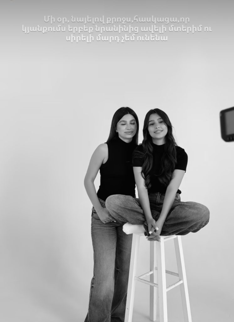 Արամ Մելիքյանի դուստրը՝ Էլիզ Մելիքյանն իր քրոջ՝ Ստելլայի հետ նոր լուսանկար է հրապարակել և գրառում արել. «Մի օր, նայելով քրոջս, հասկացա, որ կյանքումս երբեք նրանից ավելի մտերիմ ու սիրելի մարդ չեմ ունենա».- գրել է նա։