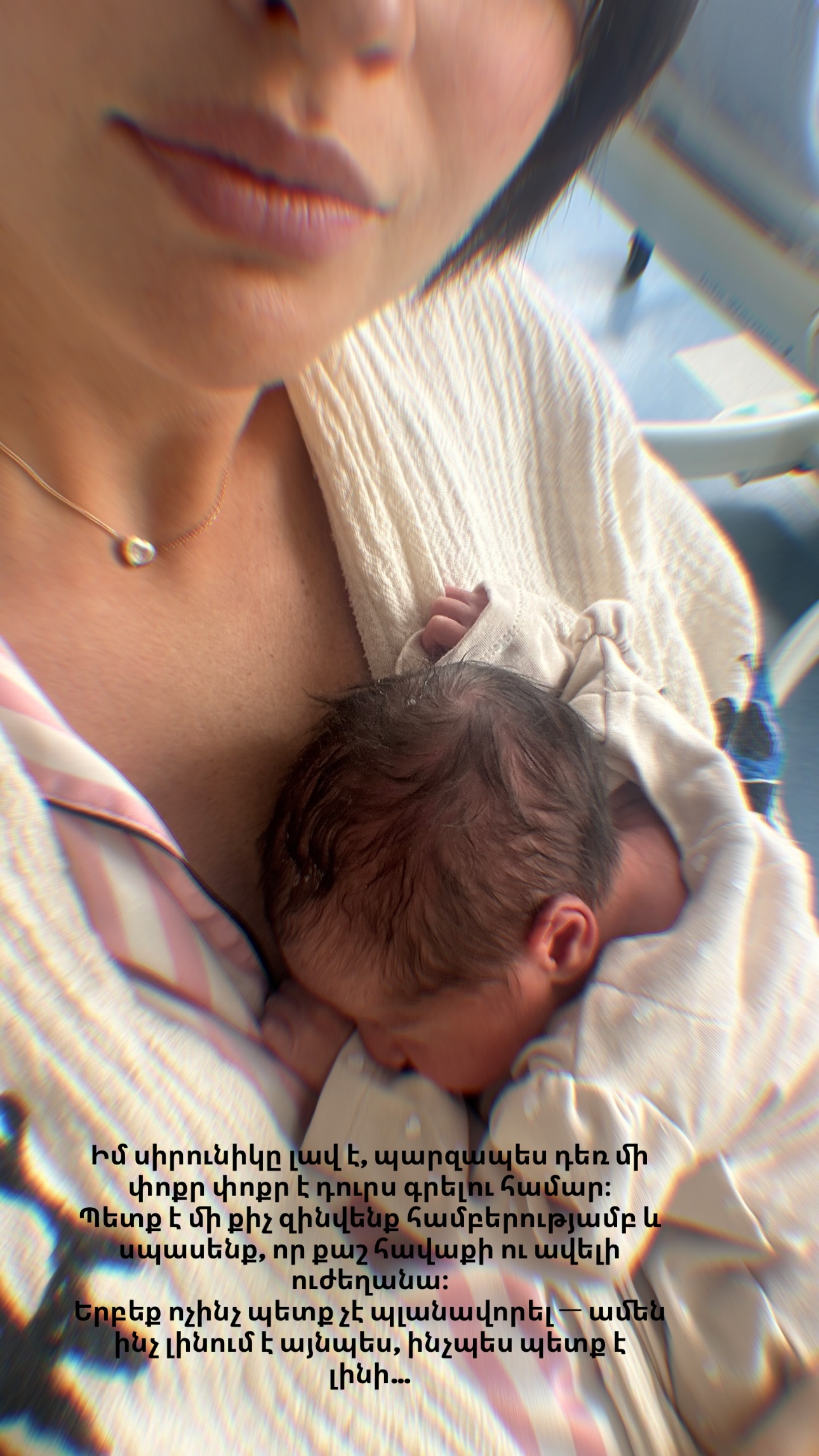 « Իմ սիրունիկը լավ է, պարզապես դեռ մի փոքր փոքր է դուրս գրվելու համար։ Պետք է մի քիչ զինվենք համբերությամբ և սպասենք, որ քաշ հավաքի ու ավելի ուժեղանա։